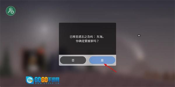 3、弹出提示已至遗忘之岛、询问是否搬家、点击是按钮、确认操作以推进后续流程。
