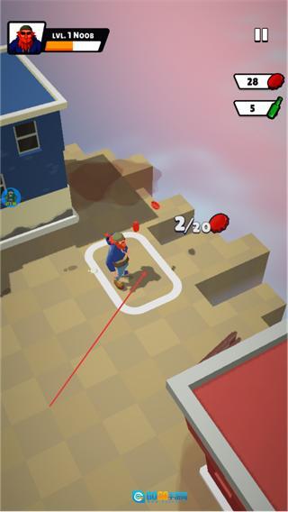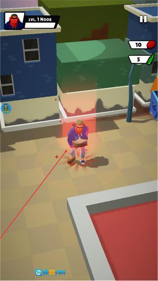 1、操控角色移动到粉色垃圾桶处翻找,获取红色道具,积累资源并提升右上角道具数量。