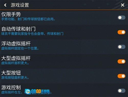 在设置界面,玩家能依据自身习惯决定是否开启自动传球与射门按钮。一旦开启,比赛里球员即便没有玩家的指令,也会主动做出射门动作。另外,玩家还可选择是否开启仅限手势按钮,开启该功能后,就只能通过手势来完成射门;要是关闭的话,手势功能和射门按钮则都能使用。