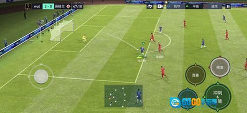 在比赛过程中,当玩家向下滑动射门按钮时,精准射门功能便会被激活,此时球员会完成搓射(也就是弧线射门)的动作,这种射门方式最适合在禁区内以斜45度角进行打门。