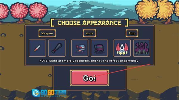 2、在空闲忍者大师角色形象选择界面,可选择Weapon、Ninja、Ship对应的外观,选好后点击Go进入游戏。