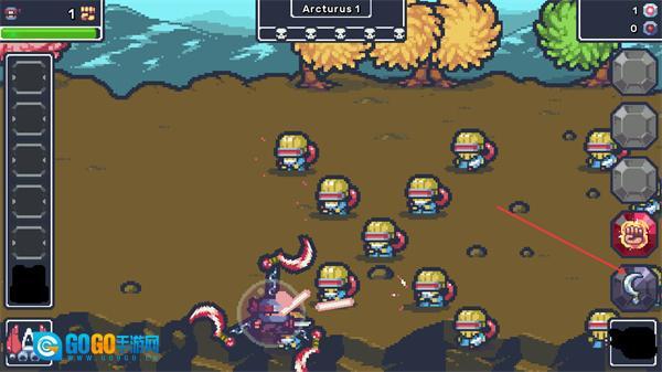 3、进入游戏关卡后,操控角色与敌方单位战斗,右侧功能按钮可辅助战斗,击败敌人推进Arcturus1关卡进度。