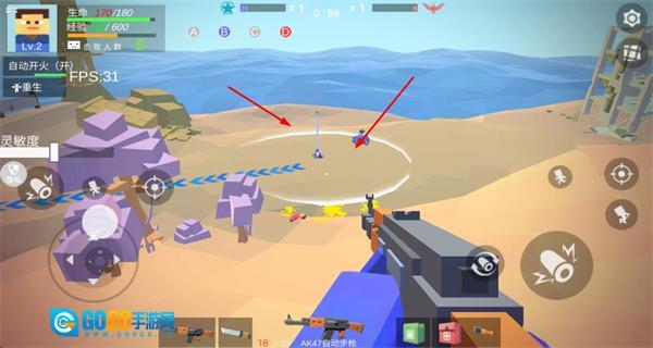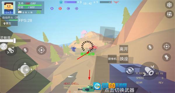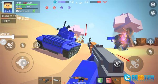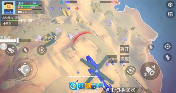 1、操控角色切换武器,攻击敌方载具与单位,积累击杀数与经验,提升等级。