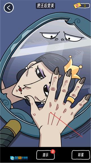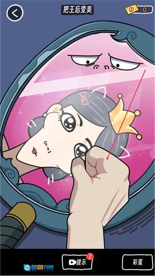 3、继续互动魔镜内的元素,调整王后外观细节,推进关卡进度。
