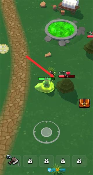 4、继续操控角色移动到资源点如绿色水池,获取生命类增益道具,提升角色续航能力。