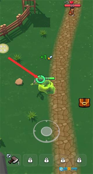 3、遇到敌方单位时,操控角色靠近目标,触发攻击交互,消耗敌方血量以推进战斗进度。