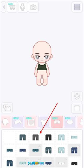 4、处于角色装扮界面、点击裤子选项、更换角色的裤子样式、完成该步装扮步骤。