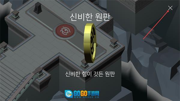 3、界面出现神秘圆盘相关提示时,点击右上角的关闭按钮关闭提示界面,以便继续进行场景内的互动操作。