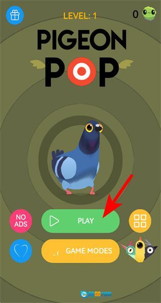 1、在启动界面点击PLAY按钮,进入Pigeon Pop的核心玩法场景,开启鸽子投喂挑战。