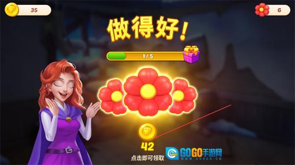 4、通关后点击奖励区域,领取金币与花朵奖励,完成关卡流程。