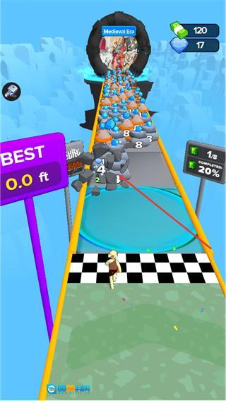 4、推进关卡时,击碎带有数字标识的石块类障碍,可获取对应数值的钻石资源,同时向MedievalEra对应的传送门前进,抵达后可进入对应时代的关卡内容。