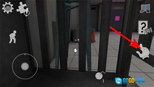 2、操控角色移动到铁栅栏旁,点击栅栏区域触发互动,解锁场景内的道具收集环节。