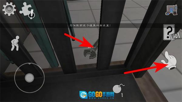 4、使用拾取的扳手,对铁栅栏的锁扣进行操作,解锁栅栏障碍以推进逃生进度。