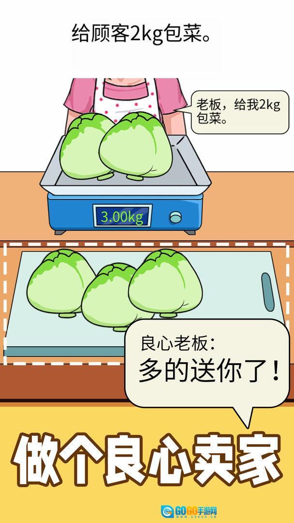 这是一款模拟开店经营的解压游戏。在游戏中,你需要做的就是满足顾客的各种需求——每位顾客想要的菜品类型和重量都各不相同。切包菜、切排骨,不停地切切切!赶紧给顾客切出足量且够秤的菜吧!要做有良心的商家,可千万别把那些边角料混进去给顾客哦~
