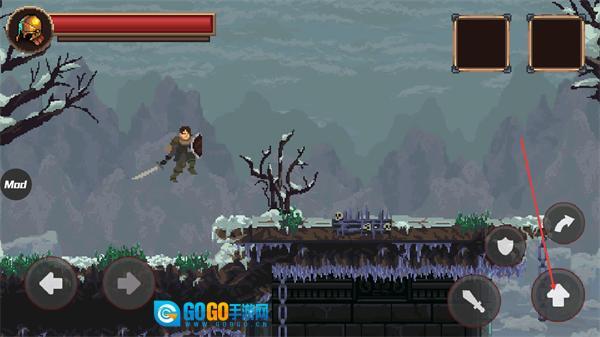 3、在场景中遇到地形落差时,点击跳跃按钮控制角色跳跃,跨越障碍登上台阶,保障角色在关卡中顺利行进。
