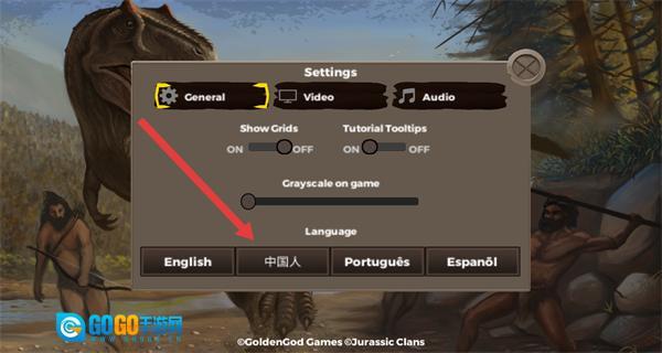 2、在设置页General栏,点击中国人选项,将游戏语言切为中文。