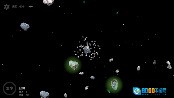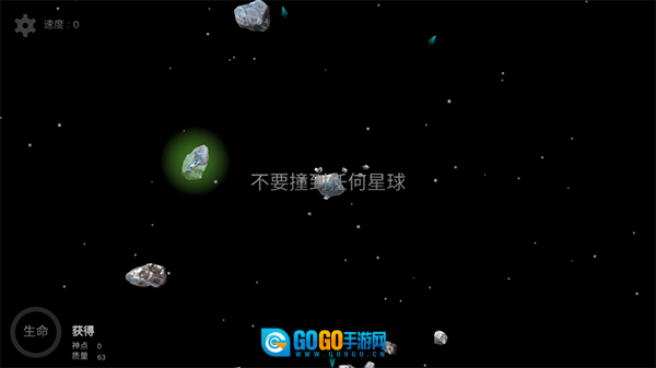 2. 游戏开始时,你将操控一颗小行星,通过吸收其他小行星来成长,但要注意不能撞击任何星球。