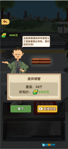 6.要是对废品有兴趣,可以选择支付代价【拿下】或者强行【抢走】;要是没兴趣,点击左上角返回,去找其他目标。