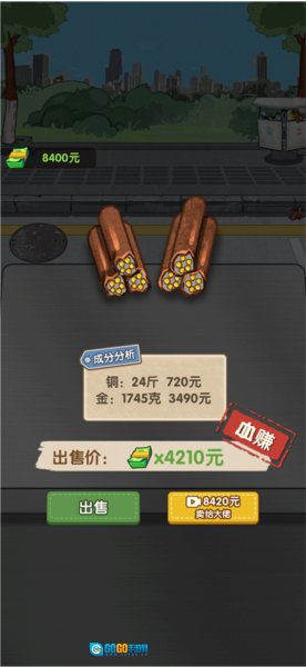 进入游戏后,点击场景里的垃圾桶进行翻找。把垃圾桶掏空后,能随机得到金币或者道具奖励(该操作会消耗体力)。