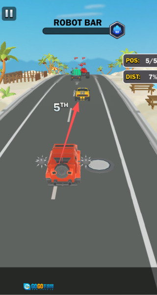 4、赛道里加入了多样的互动设计,随机出现的攻击道具和动态变化的障碍,使得每一次竞速都兼具策略性与不可预测性。