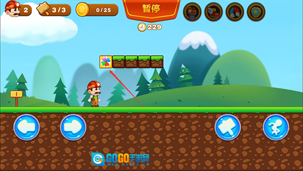 3、我们要操控马里奥移动,还要通过跳跃来躲避小怪,每局游戏有两条生命,碰到小怪就会损失一条,另外也得注意不能掉进坑里,不然游戏就会失败,玩起来还挺刺激的。