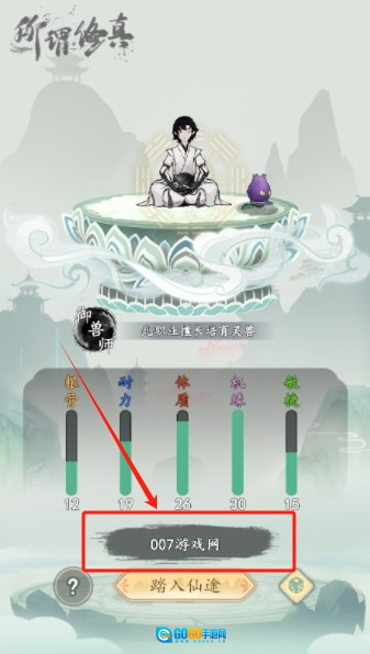 2、接着给自己取一个好听的名字后点击踏入仙途