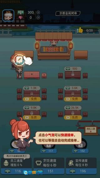 通过点击升级按钮,解锁更多色香味俱全的烤品,提升服务员与厨师的等级,以此来满足食客们的味蕾需求。