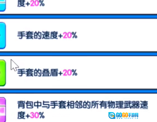 1、手套是一款辅助性较强的武器,能够为周围的武器提供较高的攻击速度加成。