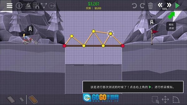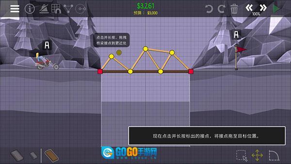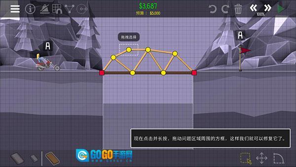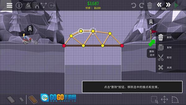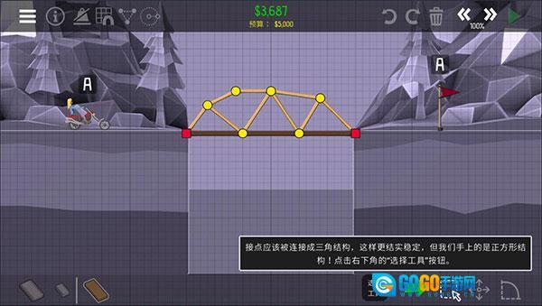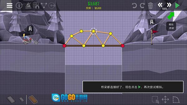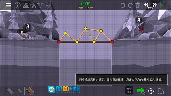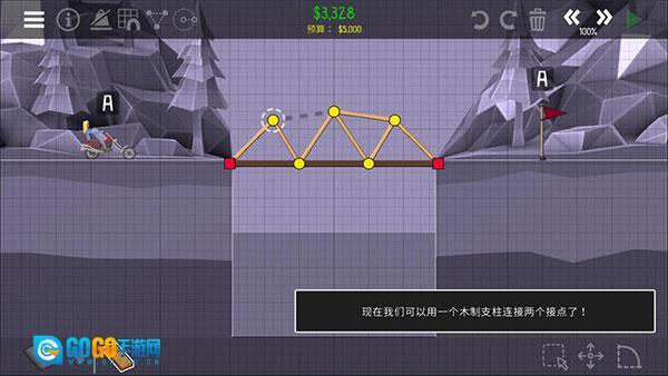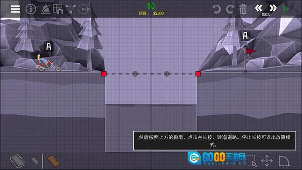 2、游戏设有自由建造模式,玩家能尽情施展想象力来设计桥梁。此外,游戏配备了帮助系统,为新手玩家提供引导与建议。