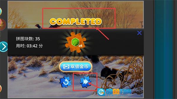 4、当屏幕上出现【COMPLETED】的提示后,确认本次挑战用时为【03:42-分】,此时点击对应的按钮就能解锁后续的拼图关卡,本次挑战顺利完成。