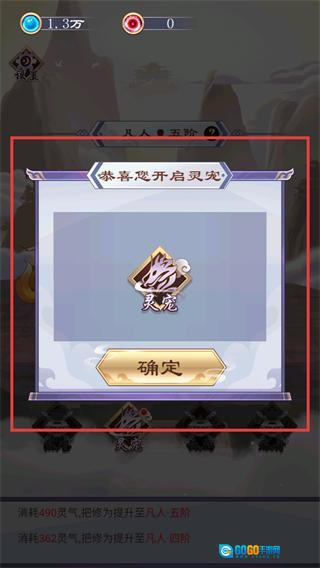 2、当看到【恭喜您开启灵宠】的提示弹窗时,点击弹窗中的【确定】按钮,就能成功进入灵宠系统,解锁这份全新的助力啦。