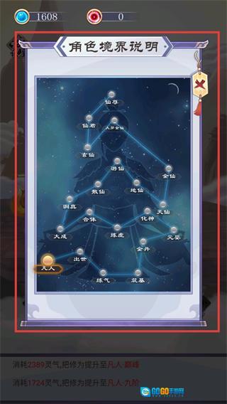4、查阅【角色境界说明】,知晓从【凡人】到【仙尊】的完整进阶路线,规划修行方向。