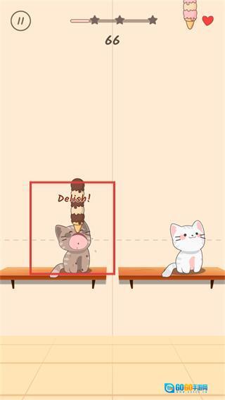 3、接着拖动该区域,使灰猫触碰到冰淇淋,此时进度会显示为【66】,并触发【Delish!】的提示,以此来增强互动的效果。