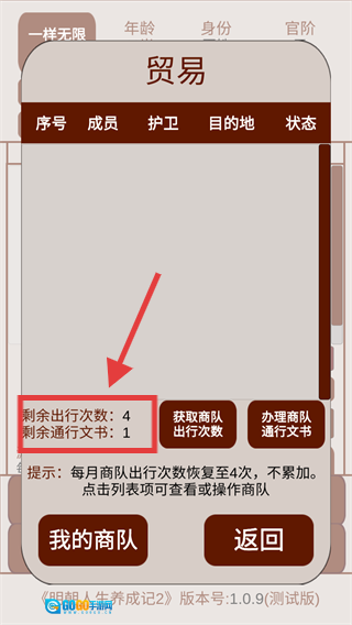 2、借助剩余的4次商队出行机会进行贸易活动,可通过办理商队或增加额外出行次数的方式,积累财富资源,为后续的职业发展与势力扩张提供支持。