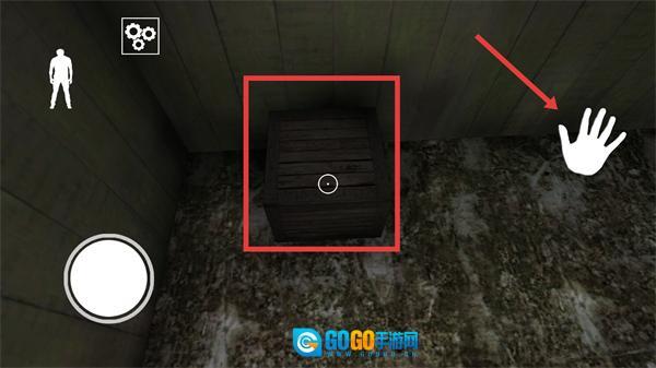 4、在探索场景的过程中,点击界面上的【手掌】图标,与红色框选区域内的木箱进行互动操作,这样就能获取木箱里的道具,为接下来的逃生环节提供帮助。