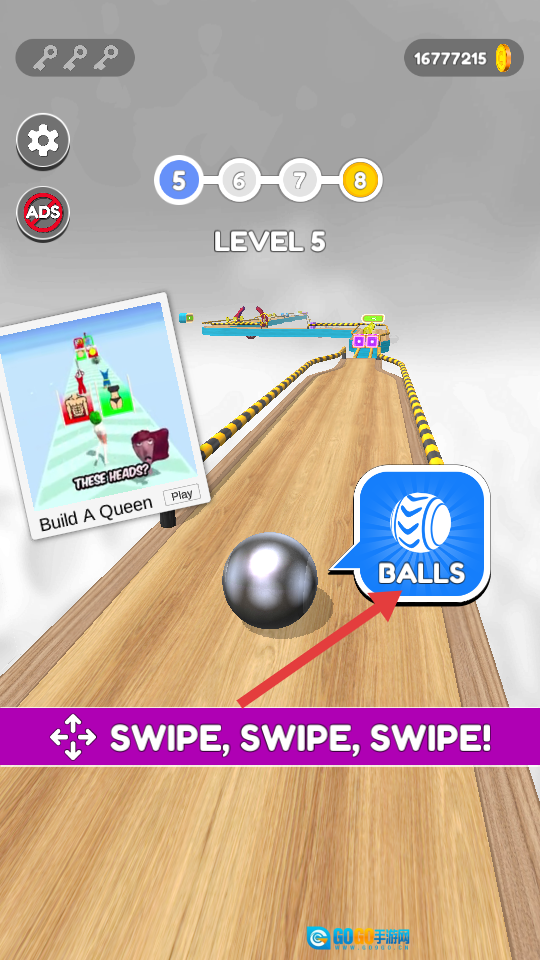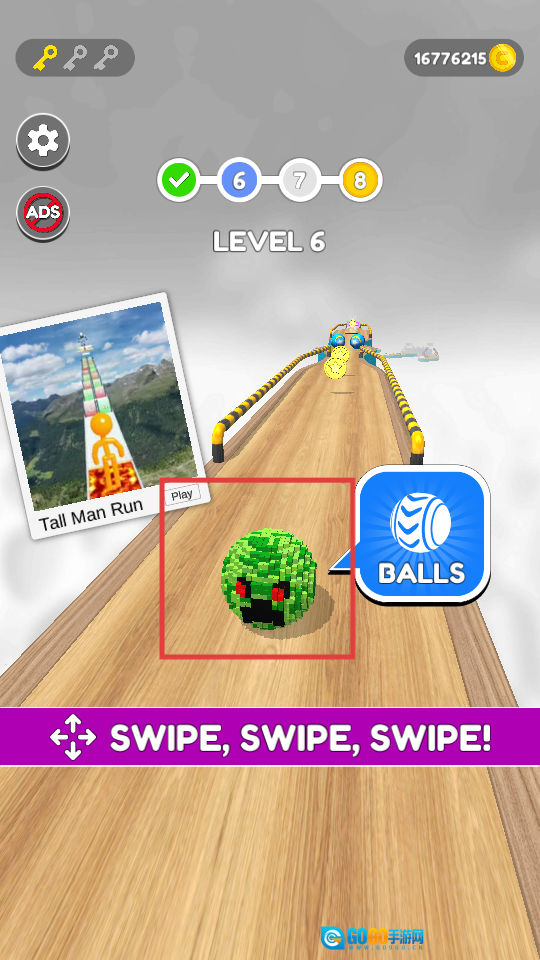 4、返回主界面后,能看到球体已成功更换,此时可操控球体在赛道上移动。