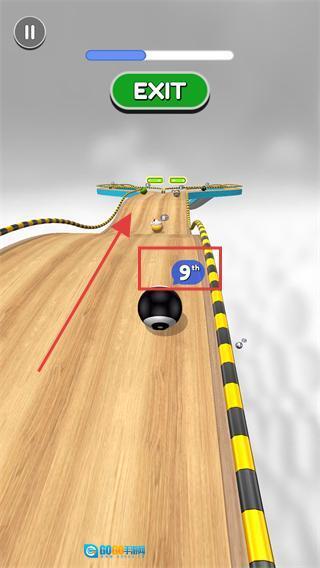 3、持续操控球体向前移动,超越带有【9th】标识的球体,朝着赛道终点的方向推进。