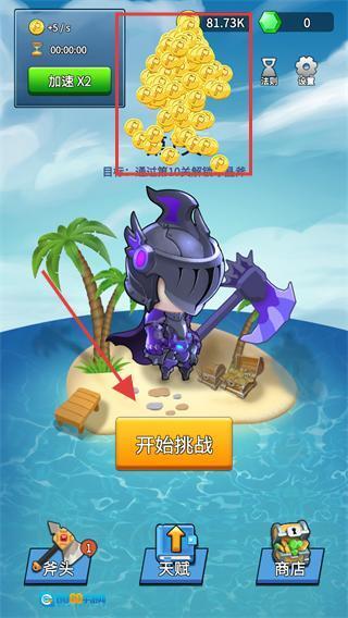 1、点击界面上的【开始挑战】按钮进入关卡,能看到上方显示的【81.73K】金币资源,做好开启对战的准备。