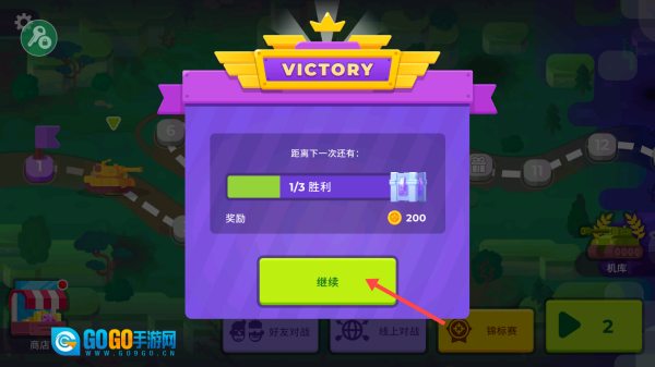 3、将敌方坦克消灭即可通关,点击【继续】持续挑战