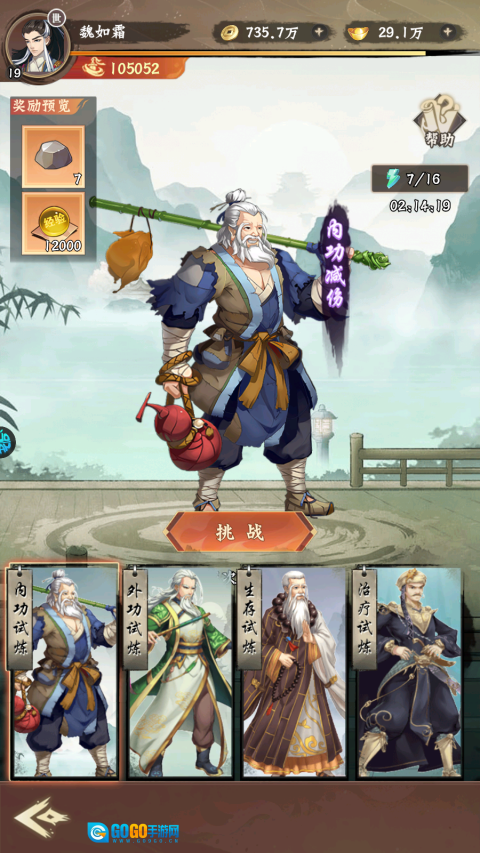 每日有两次挑战掌门试炼的机会,成功通关后将获得元宝与琉璃宝盒的奖励;开启琉璃宝盒可抽取用于招募强力伙伴的名将令牌。