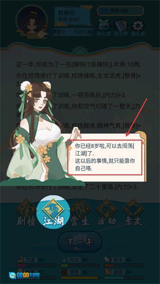 1、当角色年满8岁时,点击界面上的江湖按钮即可开启闯荡之旅,解锁后续任务与成长契机,踏上捕快的江湖征程。