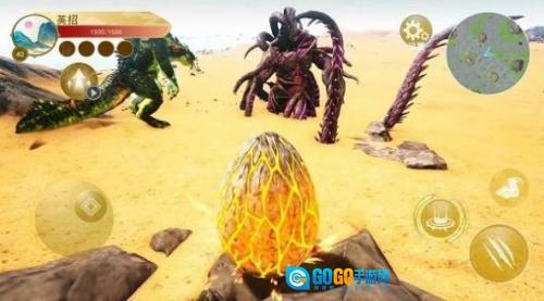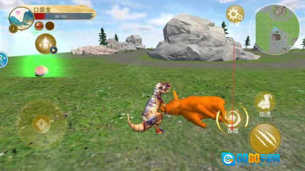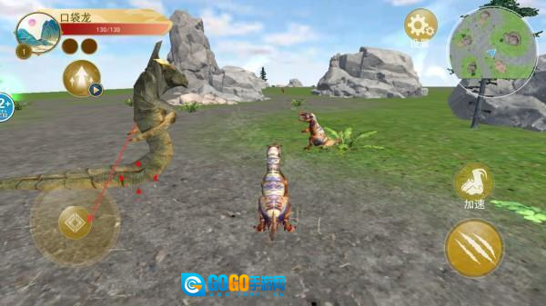 4、在游戏场景中,可操控恐龙攻击其他生物,点击【吞噬】等按钮获取资源,提升恐龙属性。