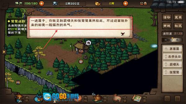 4、进入【茅草屋】见到【裘啸天】和【张莺莺】时,留意到迎面而来的杀气,要提前做好战斗应对准备。