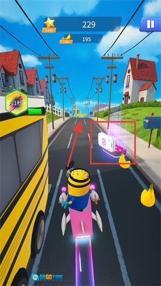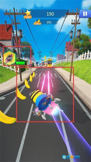 3、在跑酷过程中触发小工具效果后,小黄人会进入特殊状态并快速前进,目前星星积分是【190】,香蕉积分是【191】。