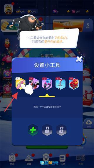 2、进入【设置小工具】界面后,挑选一个小工具添加到空位上,这样它就能在跑酷过程中为你提供助力了。