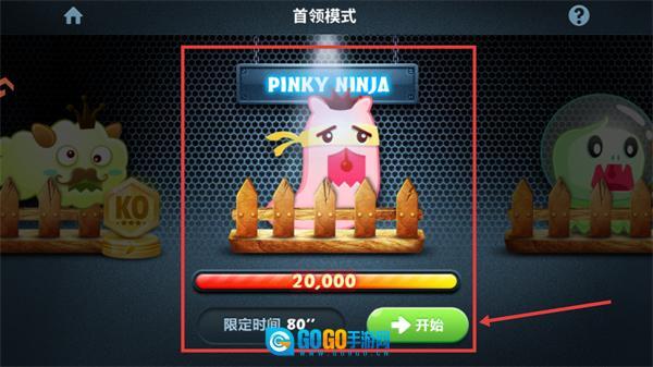 2、开启【首领模式】挑战【PINKYNINJA】时,要在【80秒】内使其损失【20,000】血量,点击【开始】即可发起挑战。