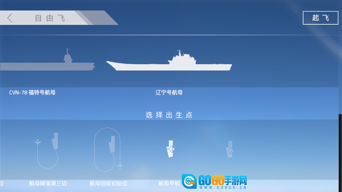自由飞模式下,区域和高度不受限制,玩家能够自由挑选机型、航母以及出生位置。