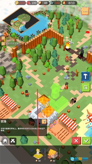 4、红色箭头所指的是【农场】建筑,解锁此建筑后能够生产食物,为营地的发展提供支撑。