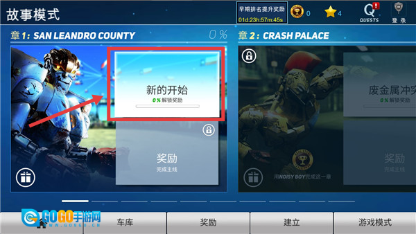 进入【故事模式】后,选择【新的开始】关卡,即可开启【章1-SANLEANDROCOUNTY】的拳击挑战。