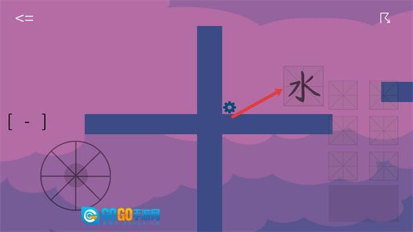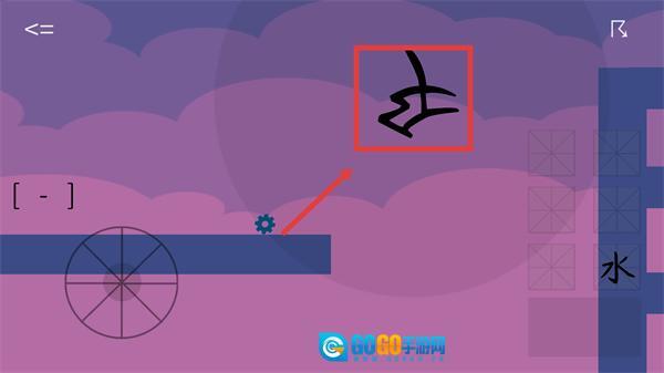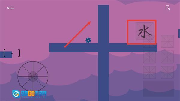2、操控【齿轮】向右移动,靠近右侧的【水】字方块,以此为触发机关创造条件,从而推进游戏进度。